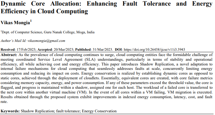 • Dynamic Core Allocation: Enhancing Fault Tolerance and Energy Efficiency in Cloud Computing